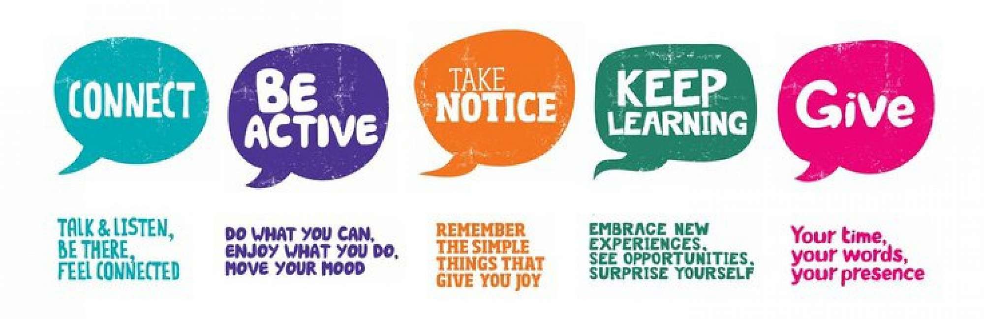 We follow the Five Ways to Wellbeing to help us on our school journey: